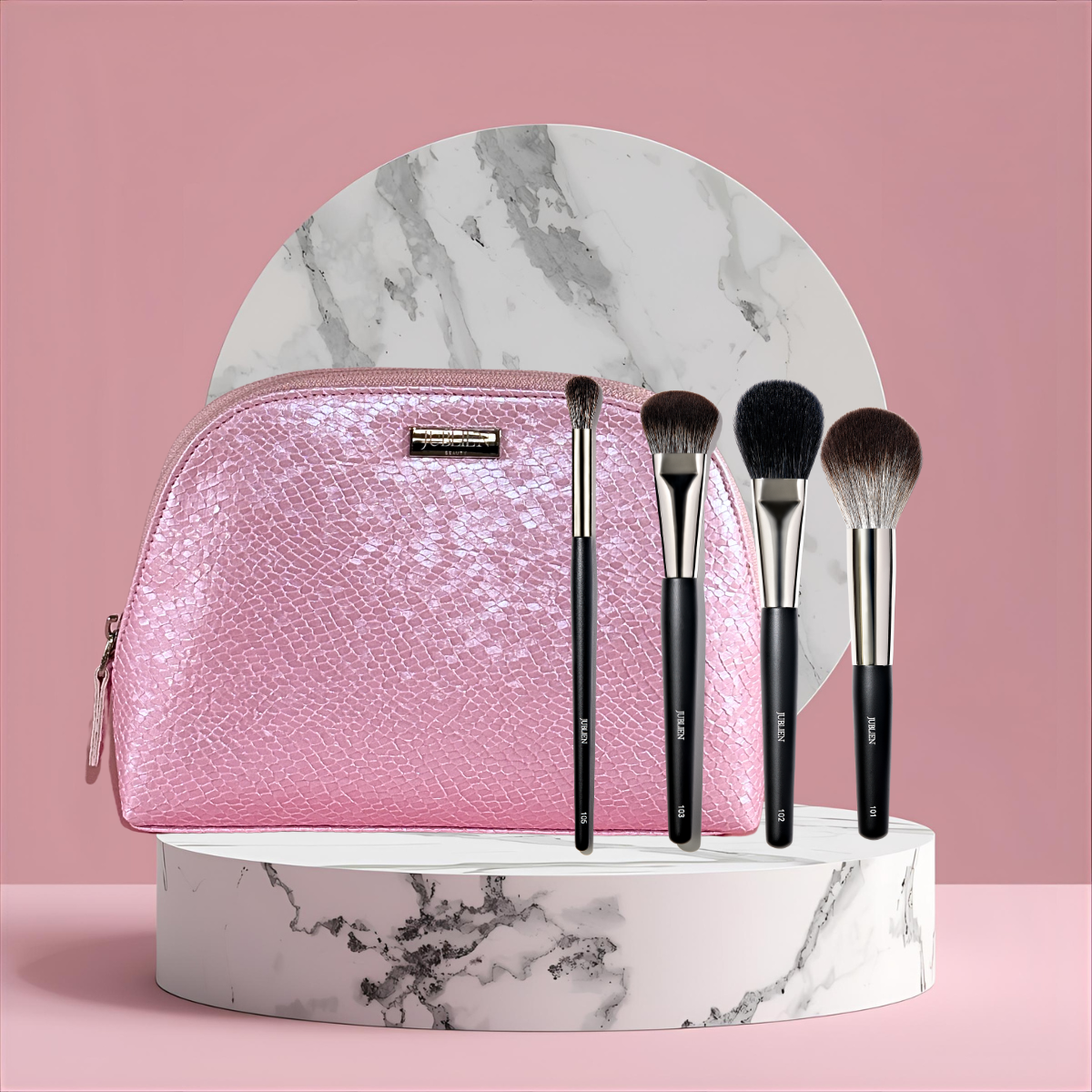 Descoperă rafinamentul în mișcare cu Setul Travel Luxury Jublien Beauty, creat pentru femeia care vrea să își păstreze rutina de frumusețe impecabilă oriunde s-ar afla. Setul conține Makeup Bag-ul roz din piele vegană și un kit de pensule profesionale esențiale pentru un machiaj complet, elegant și fără efort.